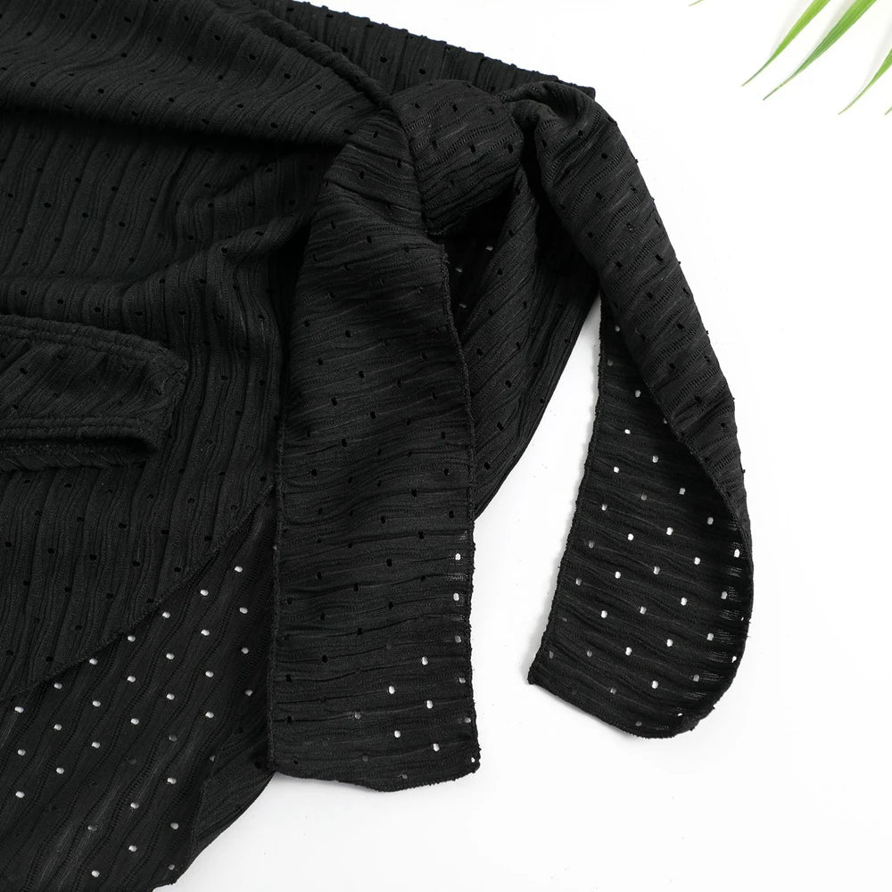 Sun-ready, flirty, and effortlessly chic — this 3-piece halter bikini set features a triangle neck top, removable padded cups, mid-waist bottoms, and a matching sarong skirt. Crafted from high-grade nylon, elastane, and polyester blend, it delivers underwire support, flexible comfort, and vibrant solid colors for beach, pool, or hot spring fun. Perfect for juniors and plus sizes alike with stretchy, snug fit.